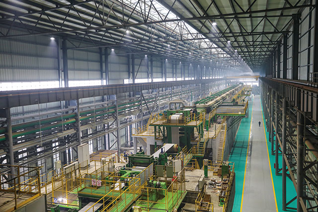 公司擁有1420酸洗冷軋聯(lián)合機組(PL-TCM)一套,機械由中國一重及中冶南方共同設(shè)計制造,電氣采用上海寶信軟件自動化控制系統(tǒng),機組設(shè)備配置合理,整體裝備達(dá)到國內(nèi)一流水平。機械設(shè)備涵蓋激光焊接設(shè)備、噴射紊流式酸洗設(shè)備、高精度雙塔式切邊設(shè)備(SMS)、五機架竄輥式UCM連軋機、新型回轉(zhuǎn)式雙卷筒卷取機,軋機電氣采用秒流量控制系統(tǒng)。